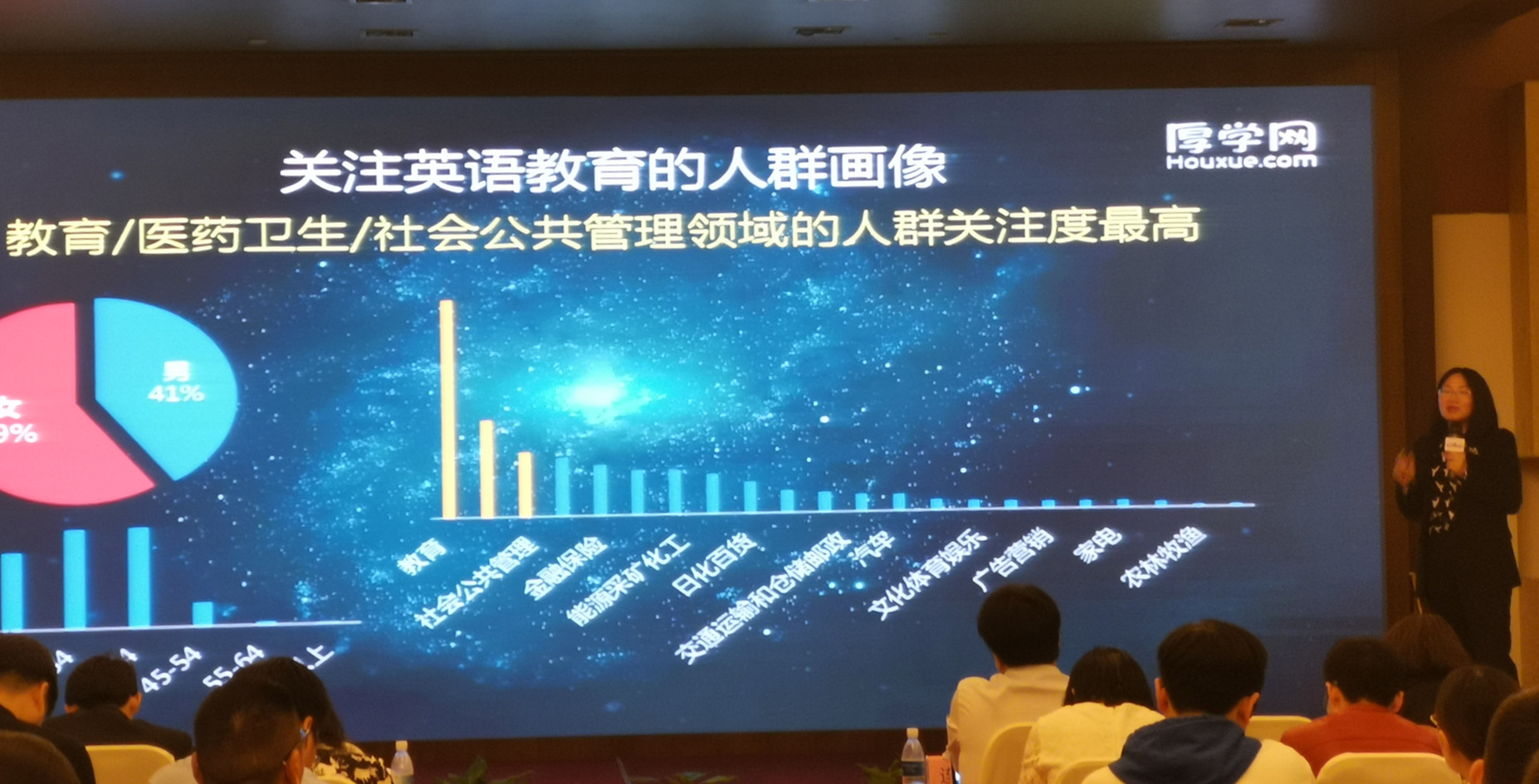 厚學(xué)網(wǎng)的運營總監(jiān)魏靜靜向大家展示了南京本地教育行業(yè)大數(shù)據(jù),詳細地分析了當下教育行業(yè)各細分行業(yè)的發(fā)展情況,讓大家更加透徹地知道了市場情況,對教育企業(yè)的發(fā)展方向及策略起到一定的參考意義。